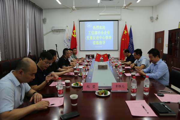 在校企协同就业创业创新示范基地,工信部中小企业发展促进中心一行重点查看了基地总体建设情况,包括人才培养、校企合作、就业创业、基地硬件设施等。