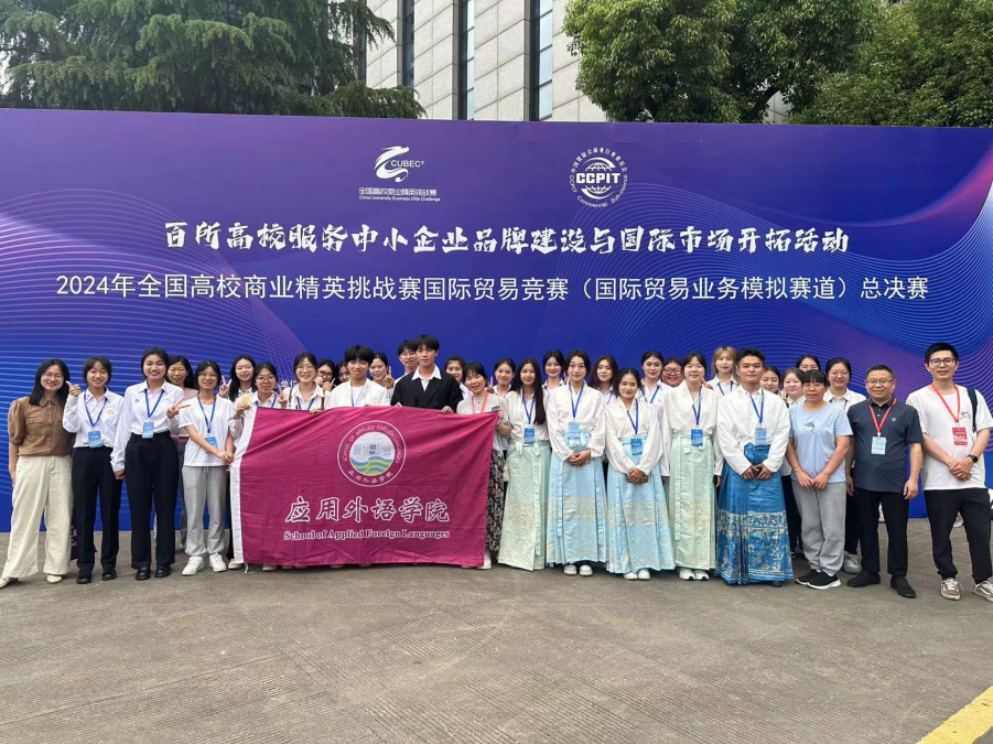 应用外语学院充分利用商务管理系教师的专业知识、学院多语种的优势,由商务管理系专业老师与各语种老师结对组成指导教师团队,商务管理系教师负责专业知识的指导、语言类老师负责语言把关与指导,经过知识赛、实践赛选拔,组织了商务管理系、应用英语系学生合作组建两支参赛队伍、应用西班牙语系学生和应用法语系学生分别组建各一支参赛队伍。指导教师团队团结协作,学生分工有序,前、后方互通有无,师生们克服初次参赛缺乏经验的短板,对接产品、走访企业、制作视频、集中演练。辛勤的付出换来丰硕战果,4支队伍中,2支参赛队伍分别获得三等奖,应用西班牙语系组建的小语种团队战胜屡获佳绩的西安外国语大学团队,获得该语种最高评分,最终揽回二等奖,商务管理系与应用英语系学生组建的1支队伍获得一等奖。