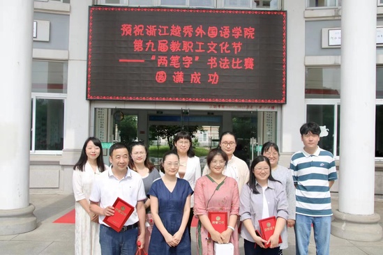 为提高学校教师专业素养,切实提高教师的汉字书写水平,同时也为校园增添一股浓郁的翰墨书香,由校工会主办、东语学院承办的第九届教职工文化节之两笔字现场书法比赛于2023年5月26日在东语学院举行。大赛分为粉笔字、硬笔字两个项目,比赛书写内容选自《习近平在中国共产党第二十次全国代表大会上的报告》,主题鲜明,积极向上,坚定信念。硬笔书法比赛第一场是硬笔书法比赛。赛场上,教师们以从容自信的态度面对比赛,用心书写,神情专注,纵横于点、横、竖、撇、捺之中,在作品纸上写下字体美观,笔画流畅、有刚有柔、清新洒脱、笔墨气韵的生动的作品。入笔、行笔、收笔,老师们笔下龙蛇腾跃,笔势雄健洒脱。粉笔书法比赛第二场是粉笔字比赛。在比赛进行中,教师们凝神运笔,挥毫泼墨。一幅幅或遒劲有力或娟秀柔美的粉笔书法作品呈现在大家眼前。他们的书写或轻或重、或缓或疾、或苍劲有力、或清秀隽永,让现场观摩的师生啧啧赞叹。比赛结束后,几位评委老师分别为获奖教师颁发荣誉证书和奖品,并与全体参赛老师和工作人员合影留念。最后,此次第九届教职工文化节——两笔字书法比赛圆满结束。校工会供稿