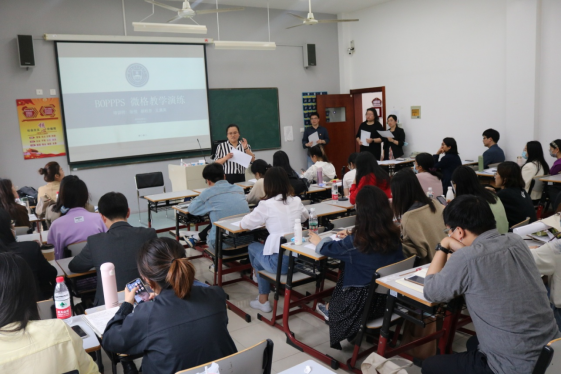 4月27日下午,教师发展中心在镜湖校区1号教学楼举办了“BOPPPS模型微课教学演练”活动。本次活动由英语学院张悦老师、网络传播学院胡秋芬老师、东部理工数据科学与传播学院王满英老师担任培训师,新葡京官网30多位第三期青年教师研习营成员参加了本次活动。王满英老师带着学员们复习回顾了BOPPPS模型的基本内容,强化大家对BOPPPS模块的认识和理解,紧接着王老师对分组演练要求作了强调和说明。随后,学员分3组分别在培训师张悦、胡秋芬和王满英的指导下进行微格教学分组演练及评价回馈。教师发展中心每组事先指定了3位学员进行微格教学演练,各组带领员与同组老师对演练教师给予了精彩的反馈及建议。老师们给出的建议和反馈非常具体,细化到导入、目标、前测、参与式学习、后测和总结六个环节,同时各组带领员也作了全面、深入、细致的点评。最后,三组学员再次集中,经三位培训师讨论决定推荐应用外语学院张嘉辉老师作为代表进行微格教学演练,让学员们再次感受“BOPPPS模型微格教学”的魅力。整个培训活动过程中带领员悉心指导,学员积极参与,各抒己见,在不断实操—演练—评价过程中快速强化、巩固教学技能,掌握科学、规范的教学设计方法,为