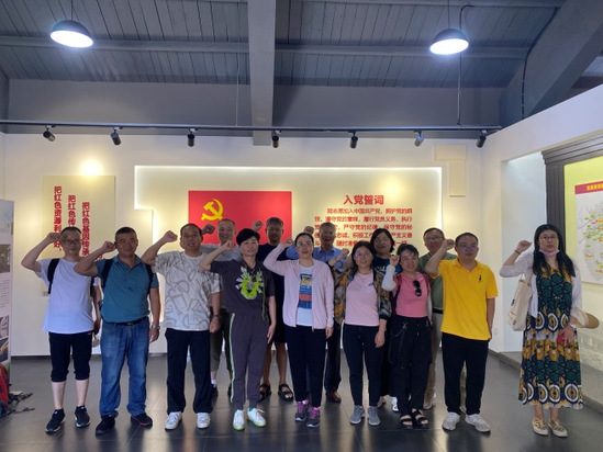 为扎实推进党史主题教育,锤炼党性修养,2022年6月18日,网络传播学院组织党员教师赴富盛镇上旺村开展以“学习奋斗精神,不忘初心使命”为主题的党日活动。在讲解员的带领下,党员教师们参观了上旺精神陈列馆。一件件珍贵照片、影像资料和劳动实物,真实还原了“八把山锄创大业”的历史故事,充分展示了上旺村半个世纪的发展历程。大家对王金友同志全心全意为人民服务、不惧困难不怕苦的精神感到敬佩,体悟了上旺村村民“穷山压顶不低头,困难挡道不回头”的奋斗精神。“我志愿加入中国共产党,拥护党的纲领,遵守党的章程,履行党员义务,执行党的决定……”,全体党员右拳高擎,神情郑重,在鲜红的党旗前重温入党誓言,传递着对党的忠诚、热爱与敬意,以及践行党的宗旨原则的决心。通过此次党日活动,党员们纷纷表示,要学习上旺人迎难而上、自强不息的奋斗精神。要以“不获全胜、绝不收兵”的决心、“逢山开路、遇水架桥”的勇气 、“抓铁有痕、踏石留印”的干劲,为学院建设和发展贡献自己的一份力量。网络传播学院供稿