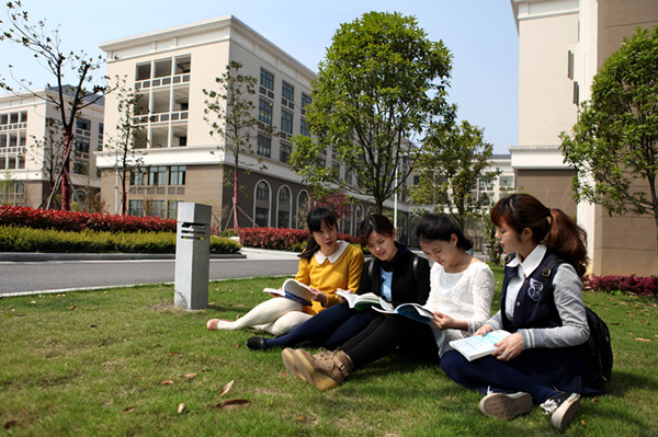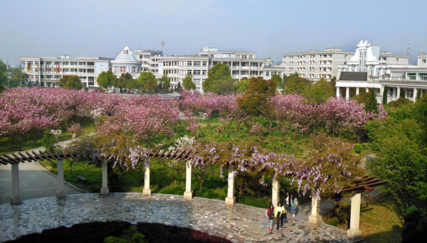 越秀学府,耸于会稽山阴;幽径边,鲜红杜鹃成林争艳。新建校区,立于鉴湖之间。校园里,粉白樱花连片盛开。禹陵边,朗朗书声教室出,学子安心。鉴 湖畔,崭新校园拔地起,志存高远。