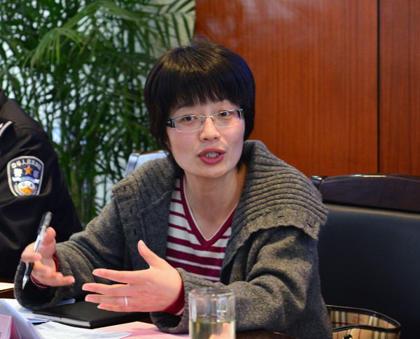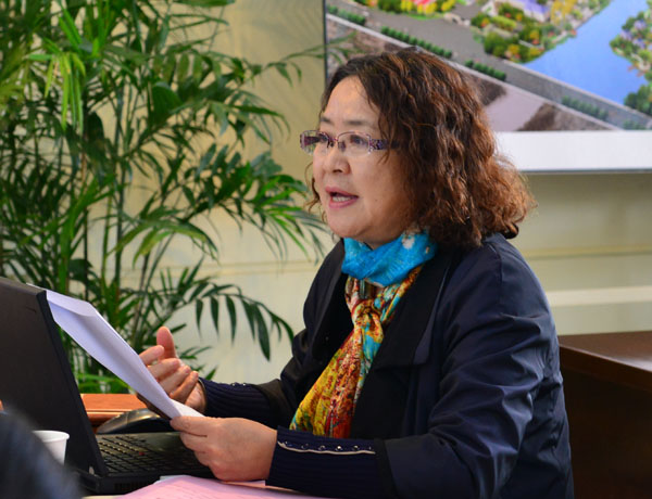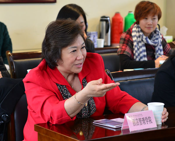 图为学校外事处处长姚兰芝汇报外籍教师聘用情况