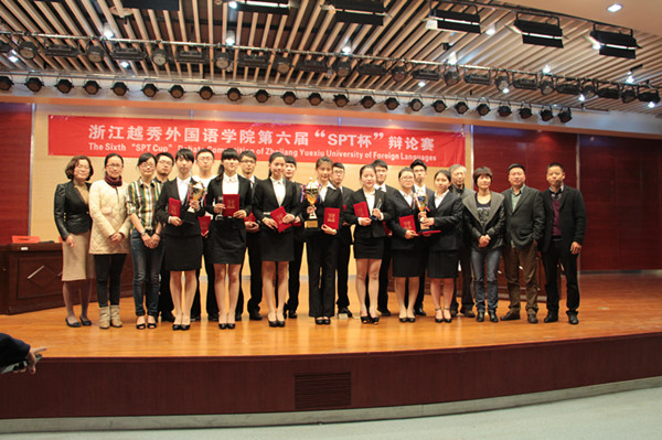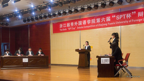 本届“SPT杯”辩论赛以“成长”为主题,秉承“博学慎思、明辨笃行、诚朴求是、与时俱进”的宗旨,历时1个月,共有13支代表队参加。经过初赛、复赛、半决赛的激烈角逐后,来自网络传播学院的两支代表队、东方语言学院代表队、英语学院代表队等四支队伍晋级到决赛。决赛第一场(季军争夺战)在网络传播学院“舌我其谁队”和英语学院“力挫群雄”队之间展开,双方围绕“早成名对成长是有利还是有弊”的主题进行激烈辩论。决赛第二场(冠军争夺战)的对阵双方是来自网络传播学院的“拆一队是一队”与来自东方语言学院的“啊啊啊啊”队,双方就“青年成才,机遇与能力哪个更重要”这一辩题进行辩论。观众反应热烈,现场气氛不断高涨。