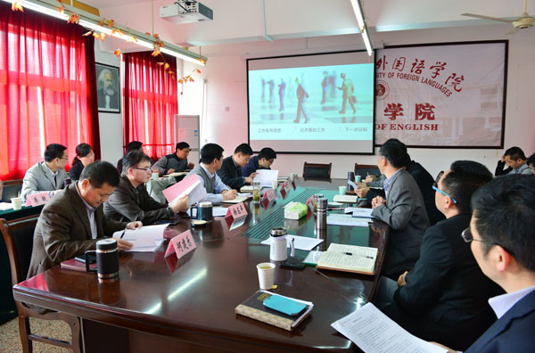 学校副校长、英语学院党委书记娄华水主持会议,英语学院院长余卫华汇报工作。
