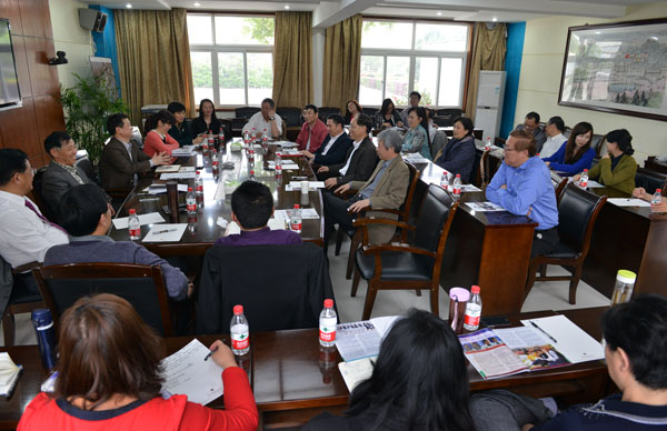 学校副校长何建乐、娄华水,教务处、科研处、学生处、英语学院、国际商学院、网络传播学院、东方语言学院、西方语言学院负责人参加会见并座谈。