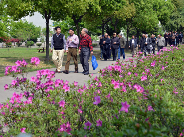 四月的越秀风景秀丽。校园里,杜鹃花争相绽放,格外艳丽;河岸边,杨柳吐绿,柳枝随风飘扬;教室里,书声琅琅,学生充满朝气活力。叶访春陪老同志们参观校园,亲自当起了导游。“这里是国际商学院,这是英语学院,这是东方语言学院……”叶访春边走边耐心地向大家讲解。老同志们饶有兴致地参观、听讲解,认为各学院统一纳入学校管理,又相对自成一体,这样的管理格局很好。叶访春和老同志们合影留念,并希望他们保重身体,生活好,心情好。