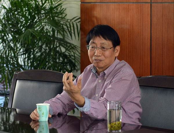 图为常务副校长叶访春欢迎老领导们的到来并介绍学校情况