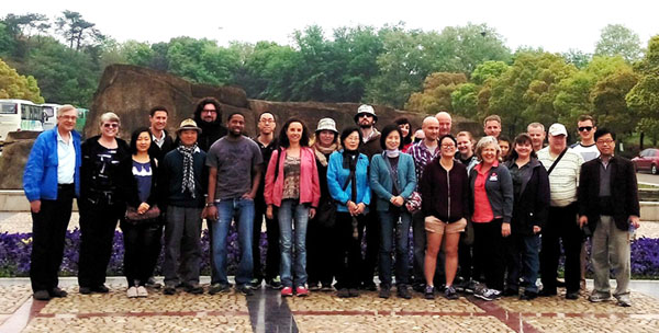 图为外籍教师在南京雨花台的合影