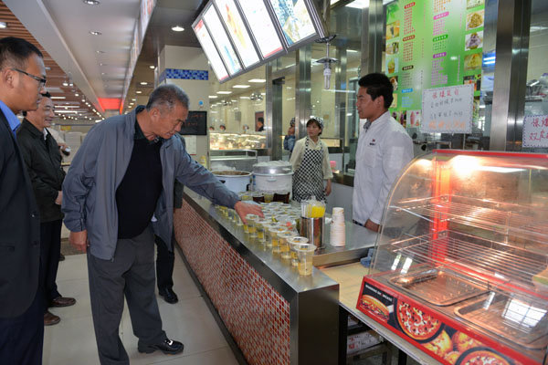 图为向张唐之董事长一行介绍镜湖校区的基本情况