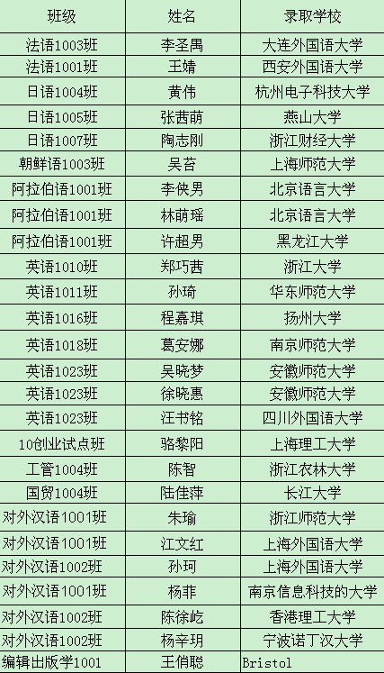 今年,新葡京官网26名应届毕业生成功考取浙江大学、北京语言大学、上海外国语大学、南京师范大学、香港理工大学、杭州电子科技大学、浙江师范大学等国内知名高校的研究生,实现求学生涯的一次跨越。