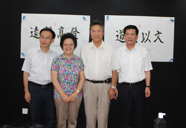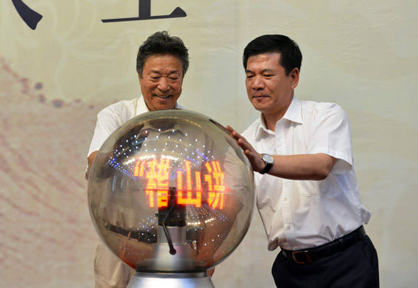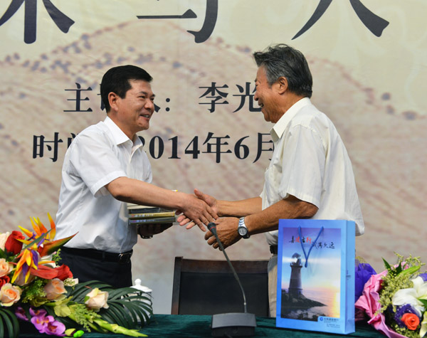 图为叶访春和李光曦共同启动“稽山讲堂”