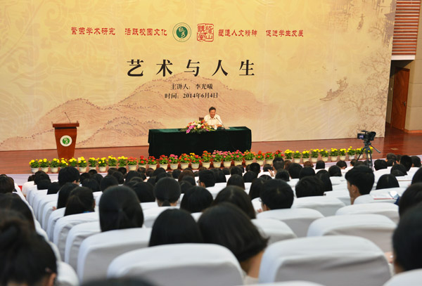 感受名家风采,共享学术盛宴。6月4日晚上6:30,学校大型系列精品讲座——“稽山讲堂”正式开讲,邀请了国家著名男高音歌剧艺术家、国家一级演员、享有国务院颁发的“有突出贡献的优秀专家”称号的李光曦先生作第一讲,讲述艺术与人生。