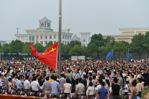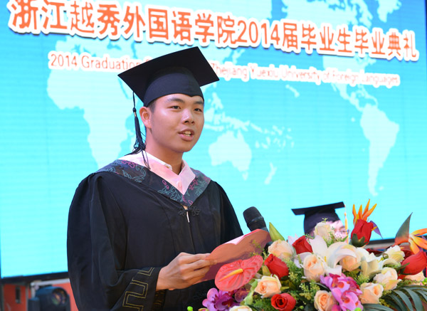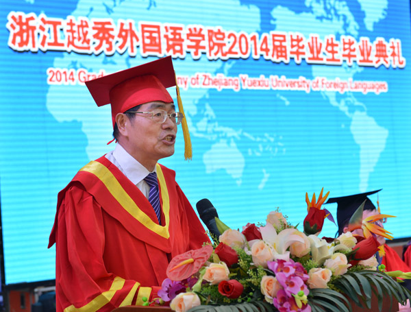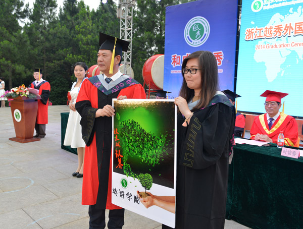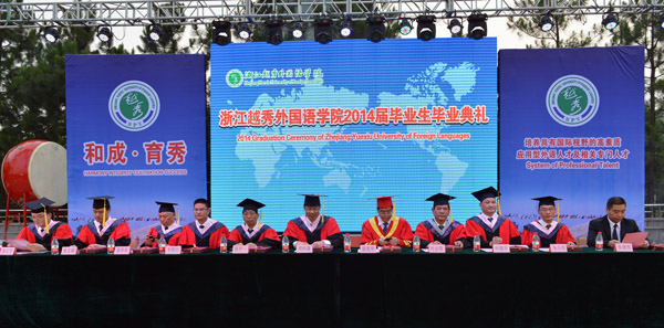 参加毕业典礼的还有学校校友总会会长、1989届毕业生、日华商事株式会社社长张建明和历届校友代表、学校各学院和处室负责人、教师代表、外教代表、家长代表、毕业班班主任、辅导员及全体2014届毕业生。