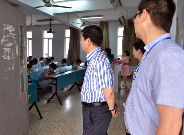 学校领导和各学院、处室高度重视期末考试工作。6月16日上午,期末考试周第一天,常务副校长叶访春深入考场进行巡考检查,看望应试学生和监考老师。