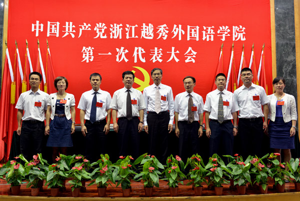 图为第一届党委委员集体亮相(左起依次为:赵海峰、施文妹、朱文斌、叶访春、胡柏藩、朱小农、单胜江、朱良、冯丽琴)