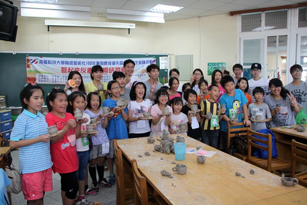 图为师生们在台南市北区大光国民小学陶艺课上合影