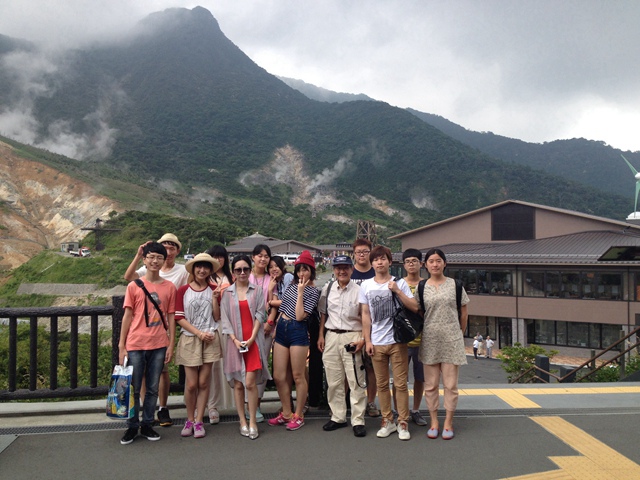简短的欢迎仪式之后,大家在常叶大学的老师带领下参观了箱根大涌谷。大涌谷是大约40万年前箱根火山活动的末期,神山的北山腹发生的火山大喷发形成的火山口遗迹。在大涌谷,大家见到了在新葡京官网任教多年的大岛茂博士。在与大岛老师亲切地交流后,发现原来大岛老师是特意赶到箱根与同学们见面的。大家都非常感动,再次感受到对方的热情,也对这次的文化体验有了更深层次的认识。