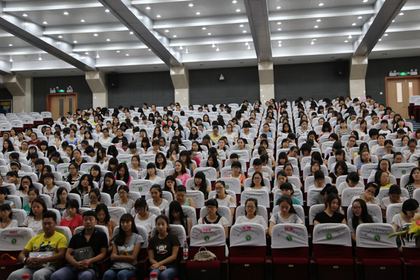 最后,徐左平副校长从守纪律、讲安全、向全省人民展示学校,展示越秀人风采的角度作动员讲话,向同学们提出三点希望:一是要以越秀大学生强烈的集体荣誉感认真参加排练和演出;二是要以越秀大学生高度的工作责任感认真参加排练和演出;三是要以越秀大学生良好的精神风貌认真参加排练和演出。