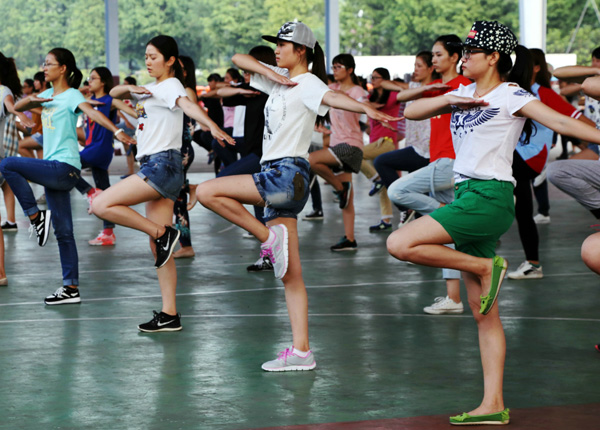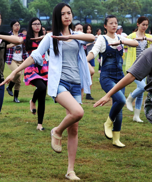 9月14日,新葡的京集团4321参加浙江省第十五届运动会开幕式表演的第一阶段排练告一段落。当天上午,组委会执行导演李导莅临新葡京官网排练现场观看了女子方阵的手操表演。在观看完一遍完整的表演后,李导情不自禁地鼓掌称好,对我们志愿者的表现极为赞赏。