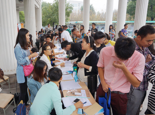 各个二级分院都开设了自己学院的新生接待处,值得一提的是,开设多年的绿色通道项目。所谓“绿色通道”就是可以快速缴费、勤工俭学、快速申请学费贷款,减少贫困家庭的压力的途径。可见,为了此次迎新,师生们做足了准备工作,方便新生入学。这样贴心的服务受到新生的赞扬,来自英语学院的王同学说:“大学里想勤工俭学锻炼一下自己,本来不知道去哪里找,现在很方便,老师马上给我安排了工作,很热情,希望自己在大学里独立一些。”