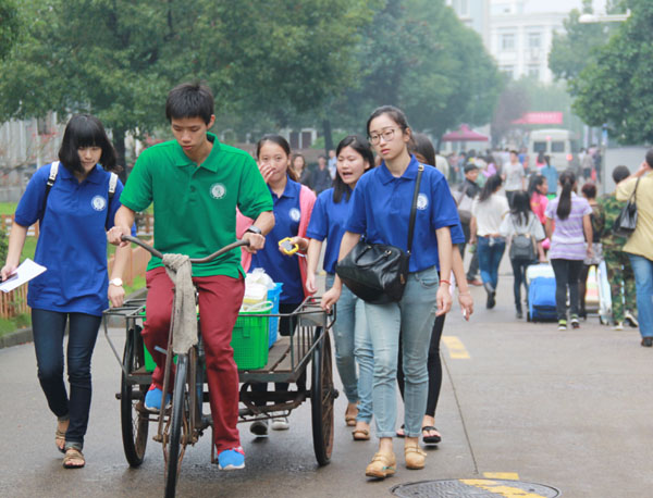 一位志愿者感慨道:“有个新生来自江西农村,内向不爱说话,对周围的食物有一种陌生感,来询问时,看见她仿佛就看到了一年前的自己。因此,在带领她办理手续的过程中,我一条条解释新生要注意的事项,并介绍学校的基本情况。等办完所有手续送她到宿舍,她对我说的感谢的话语让我陡生一种强烈的满足感,也许这就是奉献精神,让我享受到这种累并快乐的幸福感。”