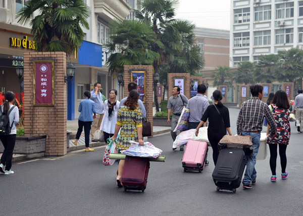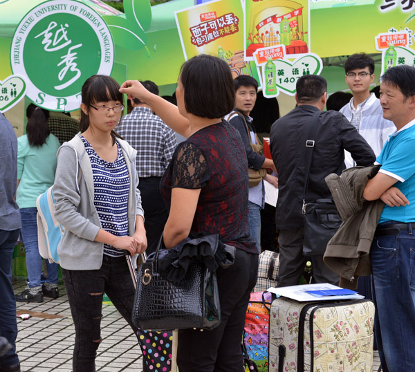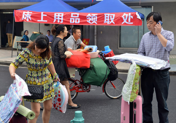 虽然学生是入学的主体,可是拉箱子、打扫卫生、收拾行李,基本都是父母在忙,新生自己反而成了“甩手掌柜”。在千客隆超市里、床上用品领取处,到处都是新生家长忙碌穿梭的身影,大到被褥床垫,小到牙刷牙膏,家长都事无巨细地亲力亲为。在一间宿舍里,记者看到,宿舍里打扫卫生、铺床单,水房里洗衣服,都是父母在上阵,宿舍楼外的空地上,已经晾满了新洗的床单被套。虽然学校有现成的被褥,从沈阳来的张女士还是从家带了新的来,“质量好些,孩子睡着舒服点,孩子这是头一回独立生活,什么也不懂,我们做父母的把能想到的都做到才放心。”张女士还打算在绍兴留两天,看看还有没有什么需要,孩子完全安顿好了再走。