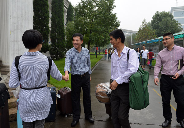 迎新工作如火如荼,到处都是忙碌的身影。记者在现场看到,许多新生从接送大巴车上一下来,就被前来迎接的志愿者们接到了各个学院的报到点。注册、缴费、领生活用品、陪同到宿舍,一路的帮助,使新生入学的手续短短几分钟就完成了。志愿者们有的在门口接应,有的在接待处帮忙为远道而来的新生和家长端茶递水,有的帮新生提行李。当问起他们累不累时,他们说虽然累,但挺有意义的。还有的说,我们去年就是学姐学长接的,那时很感动,现在我们成了学姐学长,也要给下一届新生留下好印象。