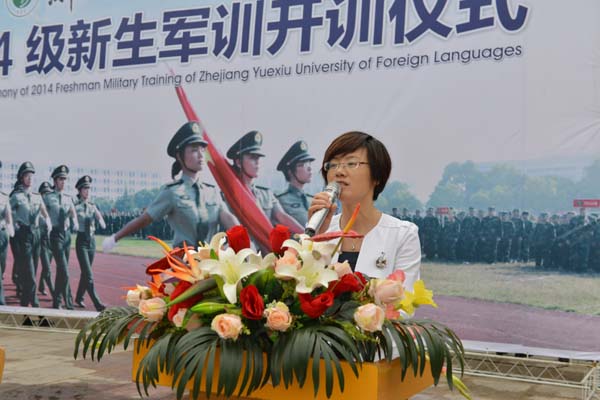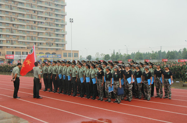 图为军训师政委、学校党委副书记施文妹颁布军训动员令