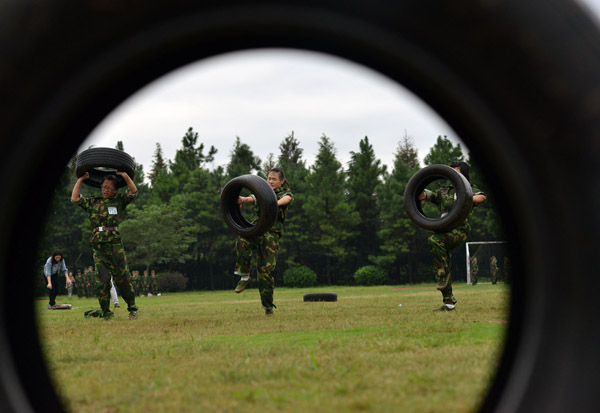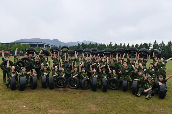 话音刚落,队员们又再次抓起轮胎投入训练,经过一次次的抓起、放下、抓起,有些体型娇小的女队员渐感体力不支,但是她们依旧坚持,借助膝盖顶起轮胎,高高地举过头顶。尽管没有阳光的追随,但是汗水依然湿透了队员们的衣背。训练中,教官和队员之间的一声声问答,如同一剂剂“强心针”提振了队员们的士气和精神。