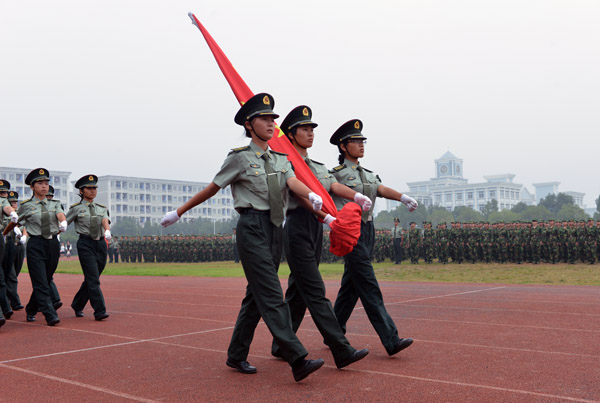 伴随着嘹亮的军乐声,队员们还在教官的统一指挥下进行了富有新意的旗语表演、擒敌拳术表演和队列操汇报表演。整齐划一的动作、铿锵有力的步伐、嘹亮坚定的口号和热情饱满的精神,充分展现了队员们刻苦训练的成果,赢得了学校领导和现场师生的一致赞许和热烈掌声。