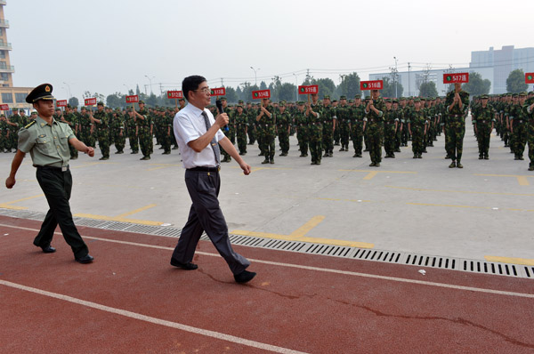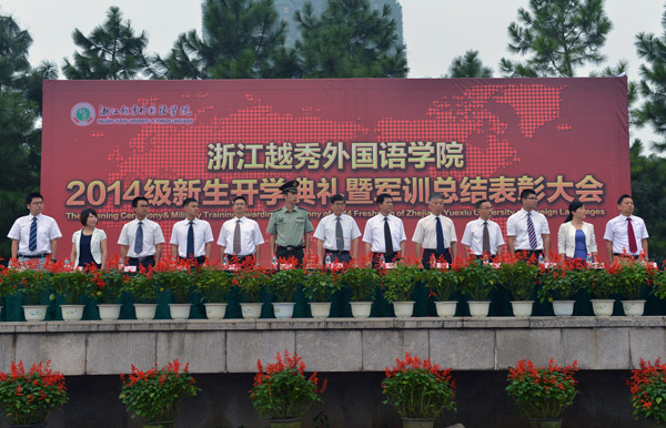 学校党政班子成员徐真华、叶访春、徐左平、单胜江、娄华水、施文妹、朱小农、朱文斌、朱良、赵海峰、冯丽琴,以及各军训团团长、学校相关处室负责人、全体新生班班主任、辅导员参加典礼。