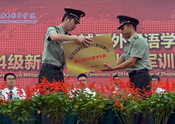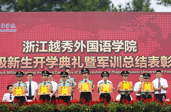 典礼上,新葡京官网被浙江省军区教导大队授予“浙江省国防教育基地大学生教官培训中心”,省军区教导大队少校、参谋庄权现场观摩了军训汇报展示后,对由新葡京官网大学生教官执教的军训成果表示了极大肯定,“在这短短的一周时间里,天气那么糟糕的情况下,展现出了这么训练有素的成果,可见越秀大学生教官们过硬的个人军事素质和带训能力。”他说,“越秀作为浙江省的军训试点,开创了高校军训的新模式,学长学姐齐上阵,这对新生来说是一个特别好的示范榜样,正是这种影响力,才有现在那么精彩的越秀特色军训模式。”