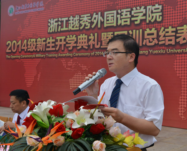 典礼上,中外教师代表、优秀学长代表、新生代表也分别上台发言,与新同学们分享了自己求学、教书、做学问的感悟和体会,并勉励新同学们要充满信心、大胆尝试、敢于突破,认真思考并规划自己的大学生活,在越秀度过充实而难忘的大学时光。