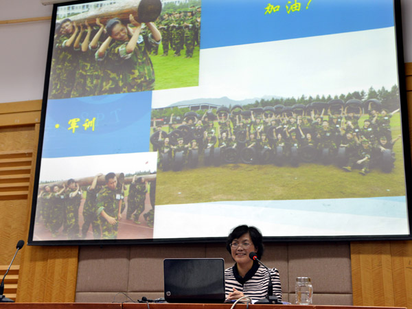 在给现场同学介绍了商务英语专业的人才培养之后,斯婉青教授还别出心裁地用一个图文并茂加背景音乐的幻灯片,向新生们展示了越秀的美好场景:美丽的校园,欢乐的面庞……一幕幕多姿多彩的大学生活画面在同学们面前展开。记者从在座同学的脸上看到了他们对今后校园生活的无限憧憬。幻灯片结束后,斯婉青教授向同学们提出了一个简单却又深奥的问题:为什么来上大学?她说,答案很多,但万变不离其宗,大学生涯为的是提高自我,不仅要为将来的职业做好准备,更要为自己将来美好的生活做好准备。关于如何安排好自己的大学生活,斯婉青教授给同学们提出五点建议,1.从通识教育走向专业教育,尽快适应大学新的学习生活;2.打好英语基本功;3.重视考级与专业技能;4.培养学习能力,提高竞争力;5.积极参加各种竞赛与实践活动,丰富校园生活,增加阅历,提高跨文化沟通能力、组织领导能力、团队协作能力和社会适应能力。