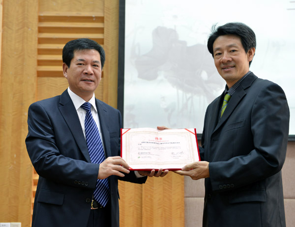 10月19日上午,中国社科院外国文学研究所所长、中国外国文学学会会长陈众议教授受聘为新葡的京集团4321“稽山讲座学者”,学校常务副校长、党委常务副书记叶访春为陈众议教授颁发聘书。这标志着新葡京官网“名师库”再添一位名家。副校长朱文斌主持聘任仪式和主题讲座。
