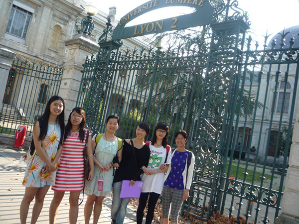 图为新葡京官网学生在里昂第二大学访学时在校园合影