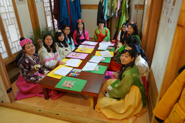 图为新葡京官网师生在韩国梨花女子大学访学期间体验韩国文化