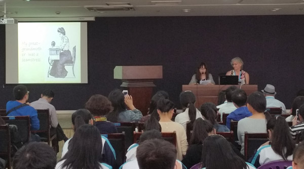 挑战同时也伴随着收获,沈祥和金宇荣两名同学就深有感触。沈祥负责为美国拼布组织的两位专家Bonnie和Ann做随行翻译。第一天担任翻译,他心中忐忑没把握,连最基本的一些关于纺织、拼布的专业术语诸如quilt fabric都不太了解,不过Ann与Bonnie并不介意,还很热心地给了他许多帮助和鼓励。因为口音问题以及词汇量的相对匮乏,双方在沟通上还有不少麻烦,但每天晚上回到寝室恶补词汇之后,沈祥出色地完成了任务。为美国内布拉斯加林肯分校的博物馆展览馆长Marin做翻译的金宇荣还发现自身对于美国文化的了解十分不足,也意识到了每一门课程的学习都是和实践密切相关的。两位同学表示将在日后的学习中调整方向,努力学习商务英语,让自己成为有理论、实践强的实践应用型人才。