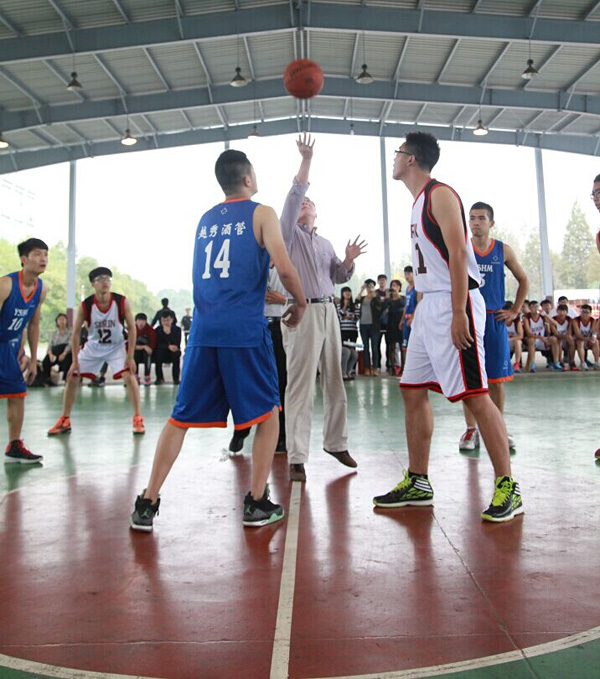 副校长徐左平为首场比赛开球,学校第三届体育文化节篮球赛正式拉开了帷幕。在接下去的2周时间里,48场比赛将渐次举行,让我们期待接下来的比赛更加精彩!