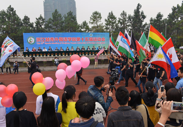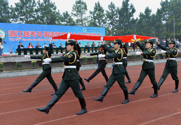 据悉,本次运动会比赛为期两天,共有英语学院队、国际商学院队、东方语言学院队、西方语言学院队、网络传播学院队、国际学院队、酒店管理学院队、外籍教师及留学生代表队8支竞技劲旅,1100余名运动员参与到三级跳远、跳高、