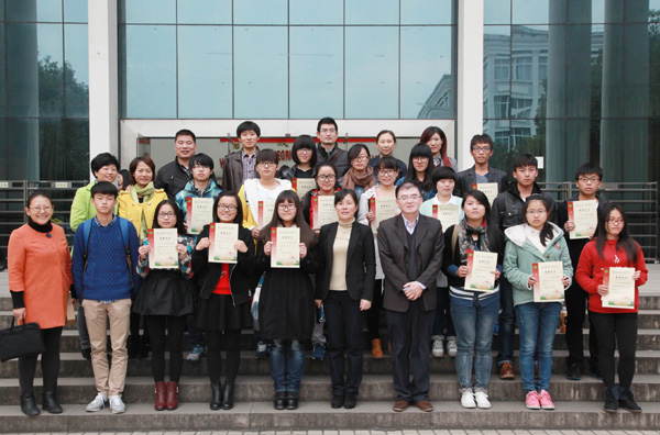 图为获奖学生领奖