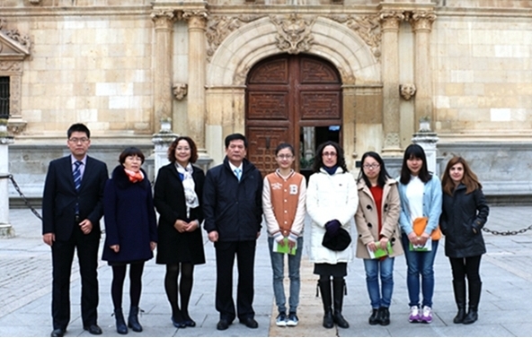 图为与新葡京官网在西班牙阿尔卡拉大学学习的学生合影