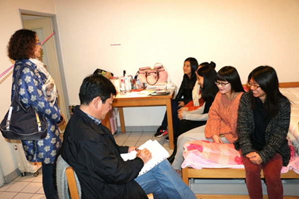 访问期间,叶访春还看望了目前正在西班牙、法国合作院校访学和交流学习的新葡京官网师生们,深入实地参观了学生们上课的教室和生活的寝室,了解他们在国外的学习和生活情况,并与师生代表进行了亲切座谈,认真听取了他们对学校发展和教学工作的意见建议。叶访春还代表学校给每位师生代表赠送了学校的纪念品。
