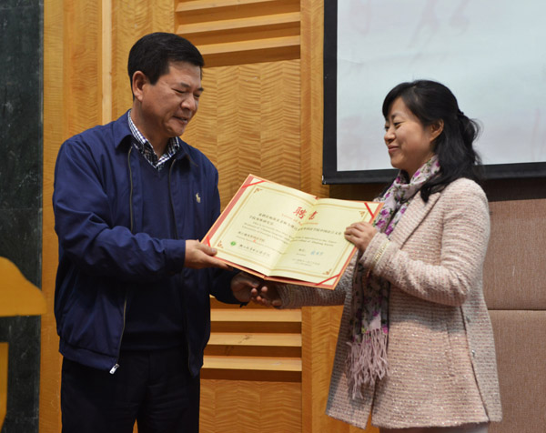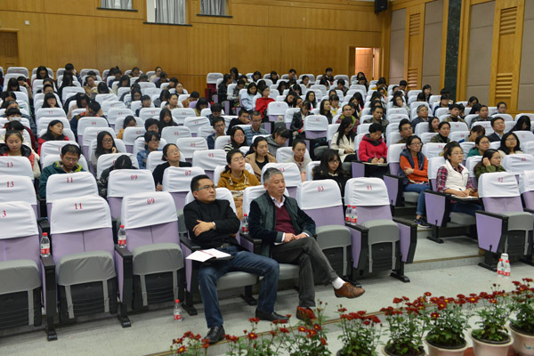 副校长朱文斌主持聘任仪式,学校相关部(处)、各学院师生代表参加聘任仪式并聆听主题报告。