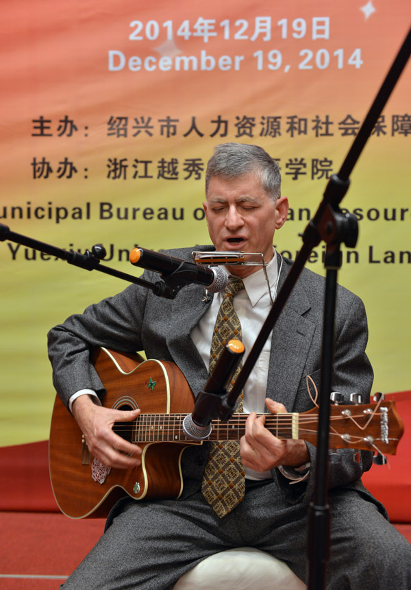 图为绍兴文理学院外籍教师吉他弹唱