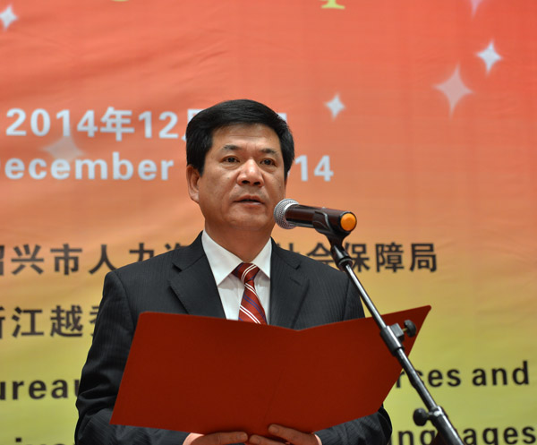 图为绍兴市委常委、副市长姚远致祝酒词
