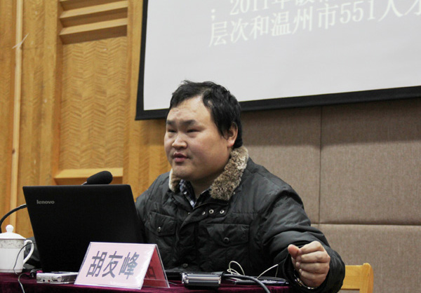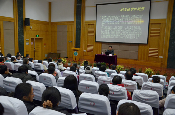 12月23日下午,应学校科研处邀请,温州大学人文学院胡友峰教授在新葡京官网稽山校区图书馆报告厅为老师们作了国家社科基金申报辅导讲座。副校长朱文斌主持讲座。