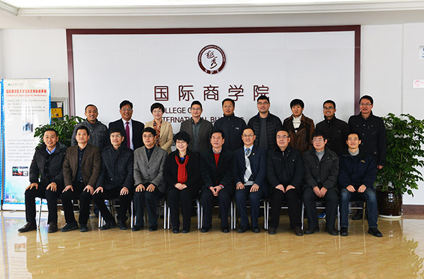 副校长单胜江、何建乐,学校党委委员、党政办主任、宣传统战部部长朱良,学校党委委员、组织部部长、人事处处长赵海峰,以及学校教务处、国际商学院党政领导、各系负责人和教师代表参加会议。
