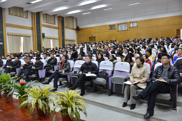 校领导叶访春、徐左平、单胜江、娄华水、施文妹、朱小农、朱文斌,以及稽山校区师生党员认真聆听了报告。学校党委副书记施文妹主持报告会。
